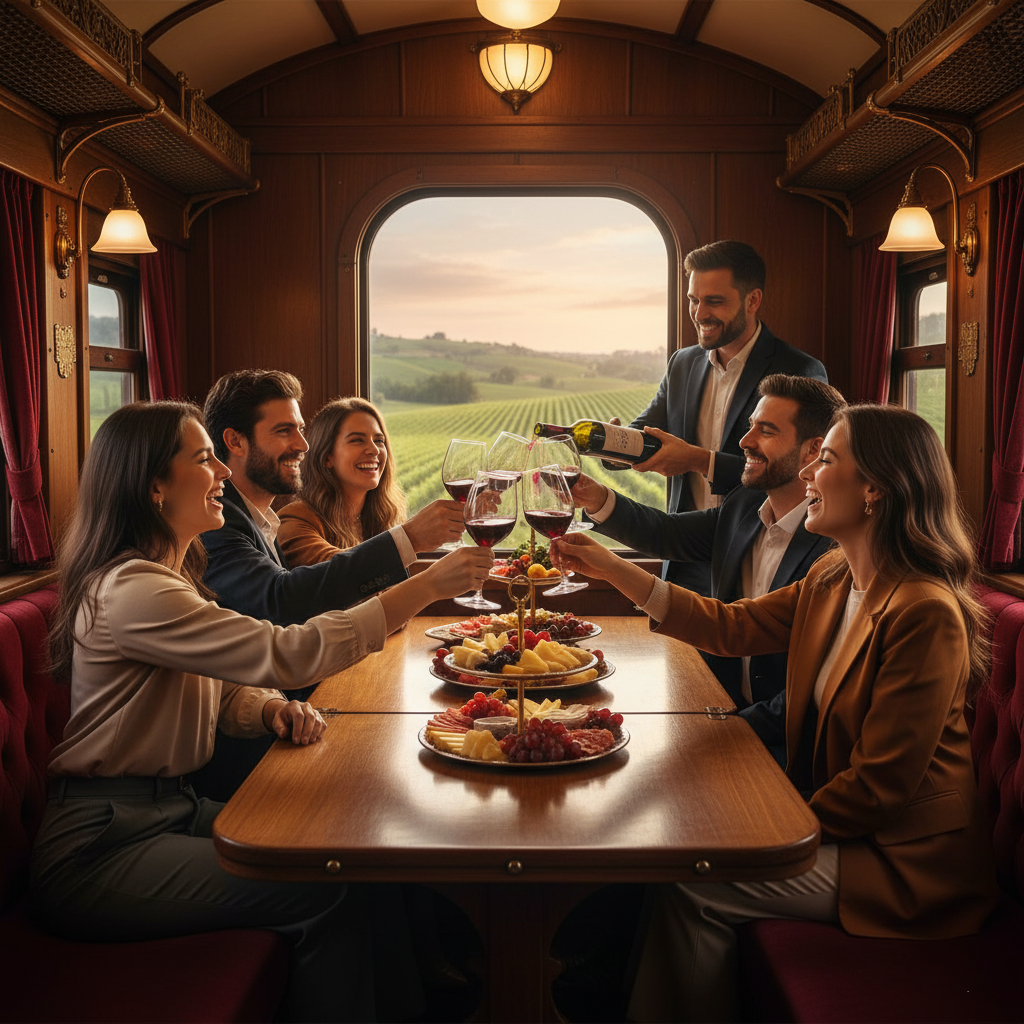 Ao embarcar, o visitante é recebido com sorrisos, músicas e apresentações que fazem o tempo parecer voltar. Músicos, atores e dançarinos conduzem um espetáculo vibrante, repleto de energia e emoção. As canções italianas e gaúchas ecoam pelos vagões, enquanto o aroma de vinho e suco de uva enche o ar, convidando a celebrar a vida e a tradição. Não há pressa — o trem avança devagar, permitindo que cada paisagem, cada rosto e cada som sejam saboreados como um bom vinho envelhecido.